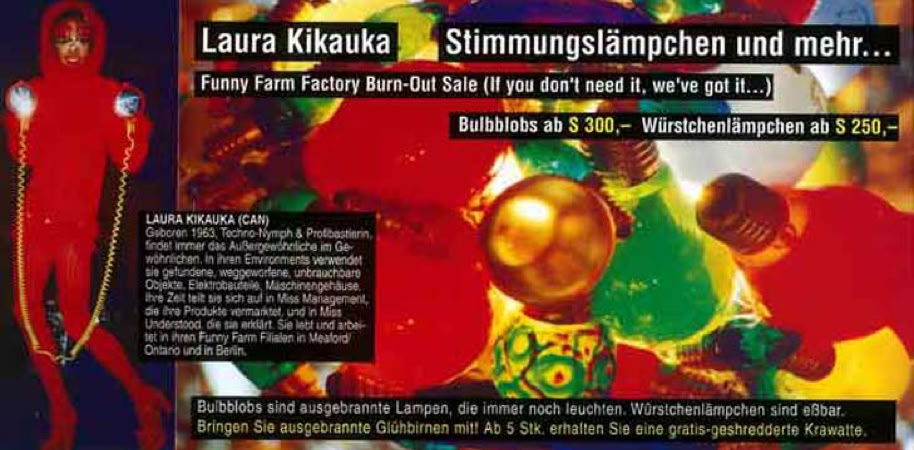 Heimische KunstarbeiterInnen: Carla Degenhardt, Loop Enterprises, Walpurgi Helm, Thomas Ochoa, Katharina Struber, Monika Pichler, Priska Riedl, Robert Jelinek/Sabotage Communications, Leo Schatzl, Andreas Strauss.