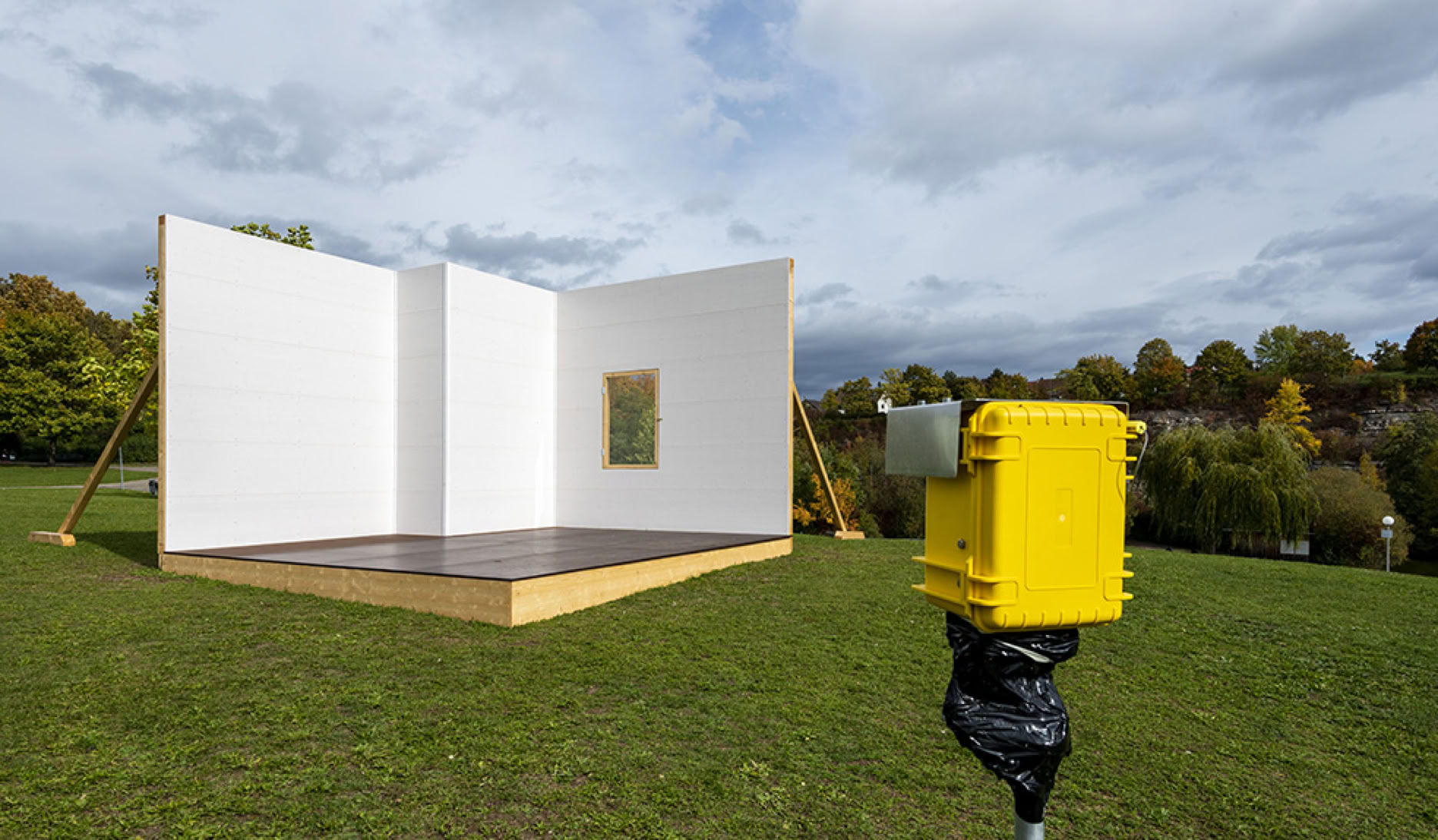 Für seine Installation errichtete der Künstler auf einer großen Brache ein bunkerähnliches Gebäude. Das Gelände ist eingezäunt; niemand kommt näher als ca. 100 Meter heran. An der Straße ist ein Fernrohr installiert, mit dem das Publikum den Bunker beobachten kann. Lebt der Künstler wirklich in seinem Rückzugsort? Im Internet wird das Geschehen im Innenraum übertragen. Der Künstler inszeniert seinen Rückzug und exponiert sich damit gleichzeitig selbst.