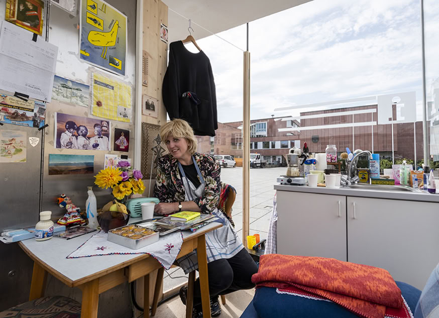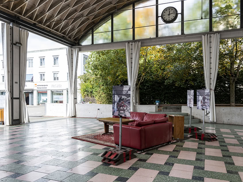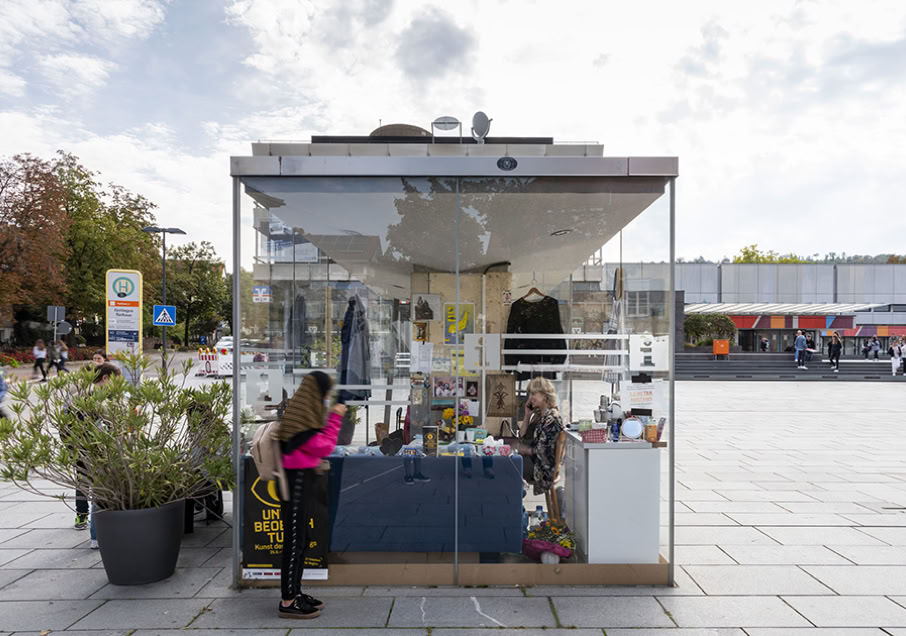 Wohnen unter Beobachtung: Die Performancekünstlerin hatte sich in einem Buswartehäuschen eine Bleibe eingerichtet. Für drei Wochen lebte sie unter den Augen der Gerlinger Öffentlichkeit auf etwa drei Quadratmetern. Das kleine Domizil bot gerade Platz für das Allernötigste: ein Klappsofa, Regal, Tisch, zwei Stühle. Blumen, Bücher und Bilder schufen eine gemütliche Atmosphäre. Selbst Mahlzeiten bereitete sich die Künstlerin zu.
