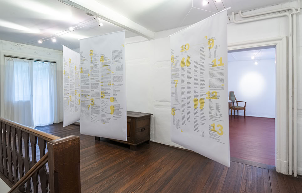 Für ihr Projekt sammelte das Künstlerpaar allerhand Dinge: Möbel und Teppiche, aber auch Wörter und Sätze sowie inszenierte Aufnahmen von Personen in ihren öffentlichen Rollen oder in ihren Privaträumen. Die eingebrachten Porträts säumten temporär öffentliche Wege und Straßen, zudem wurde im Zentrum ein Wohn- und Lebenszimmer gestaltet; einen für Alle zugänglichen Raum in der Öffentlichkeit.