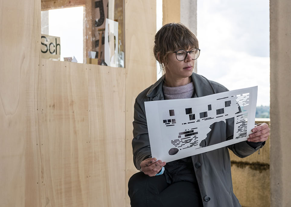 Für das Foyer der Galerie hat die Künstlerin eine Installation aus farbigen Papieren zum Festivalthema geschaffen. Sie greift in ihren Werken auf, was ihr im Alltag begegnet. Ausgangspunkt ihrer Arbeit in Waiblingen ist der Gemütszustand der großstädtischen Bevölkerung zwischen dem Wunsch nach Rückzug, dem Drang nach Öffentlichkeit und der Flucht vor Überwachung.