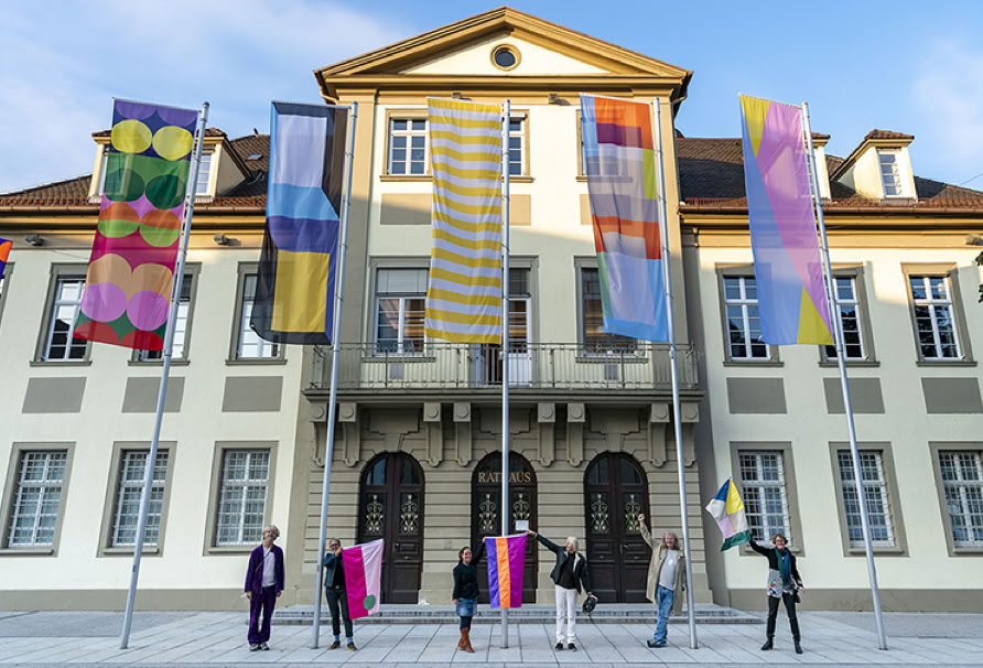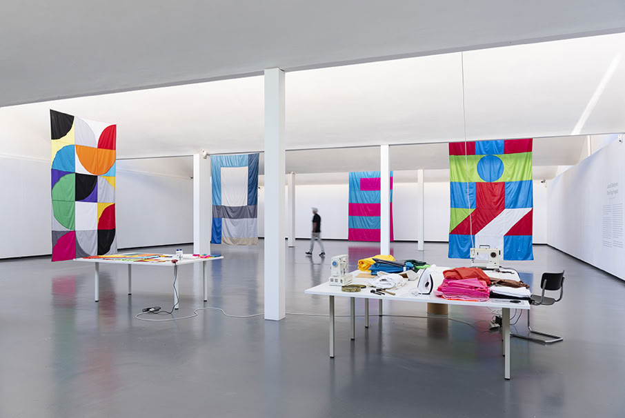 Der Künstler richtete den Ausstellungsraum als Schneiderei ein. Besucherinnen und Besucher waren eigeladen, eigene abstrakte Entwürfe zu gestalten. Aus ihren Vorlagen wurden vor Ort Fahnen gefertigt. Beginnend im Hof der Kunsthalle breiteten sich die Flaggen im Stadtraum aus.