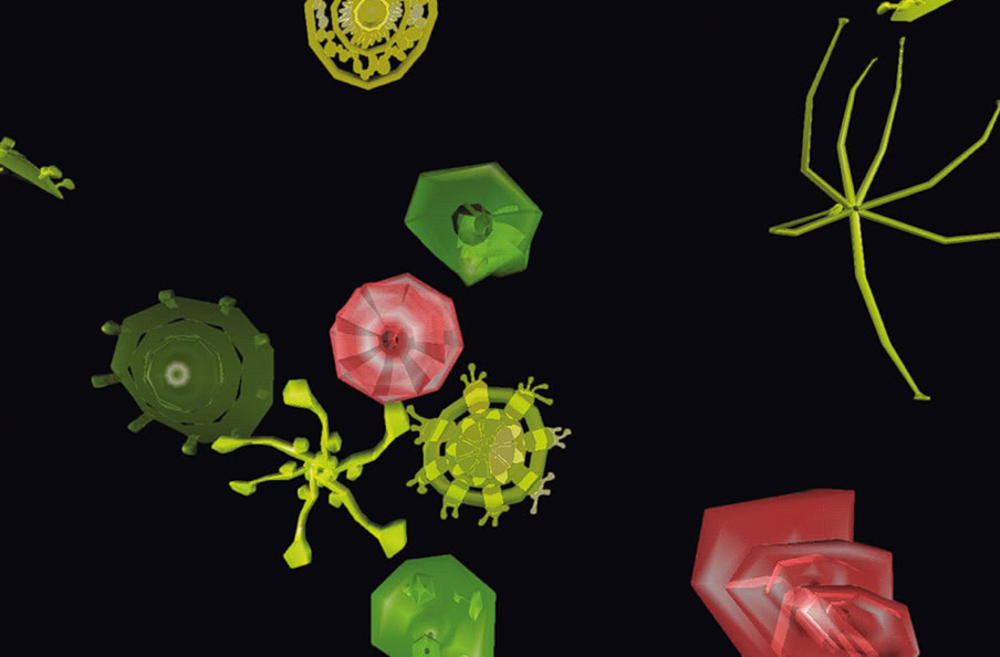 Christa Sommerer & Laurent Mignonneau (AT/FR): Anthroposcope, 1993, interaktive Installation. Foto: Florian Voggeneder