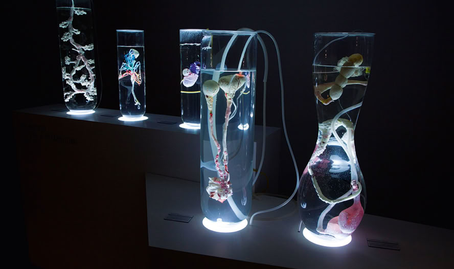 Heather Barnett (UK): The Physarum Experiments, seit 2009, Labyrinth aus Plexiglas mit Schleimpilz, Videoprojektion, Zeichnungen. Foto: Florian Voggeneder