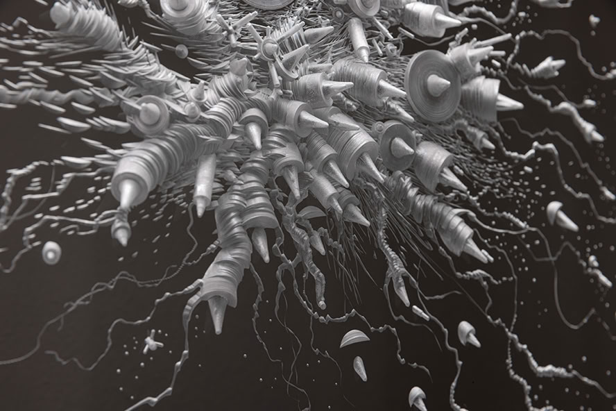 Die Ausstellung mäandert zwischen den unermesslichen Weiten des Universums und dem mikroskopisch Kleinsten der Natur und geht der Frage nach, in welcher Art und Weise wissenschaftliche Erkenntnisse von Künstlerinnen und Künstlern aufgegriffen und interpretiert werden – zuweilen durchaus mit Ironie und Humor. Nebenbei geht es um menschliche Vorstellungs- und Innovationskraft, die gleichermaßen als wissenschaftlicher wie künstlerischer Impetus fungiert.